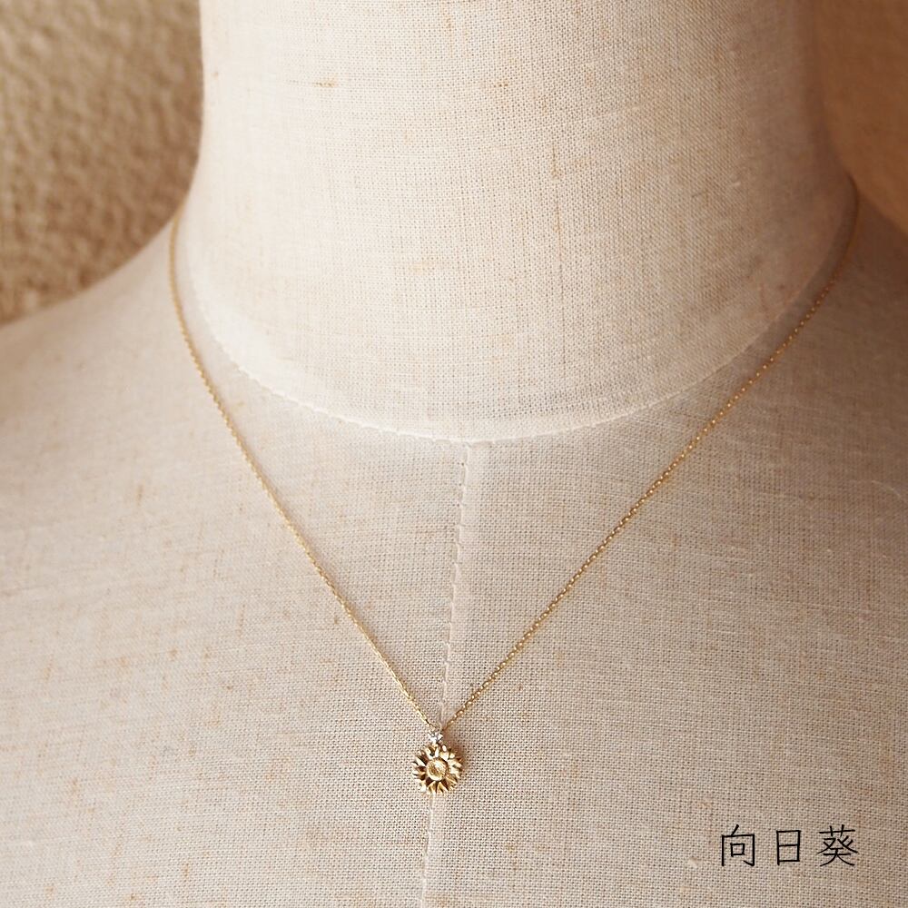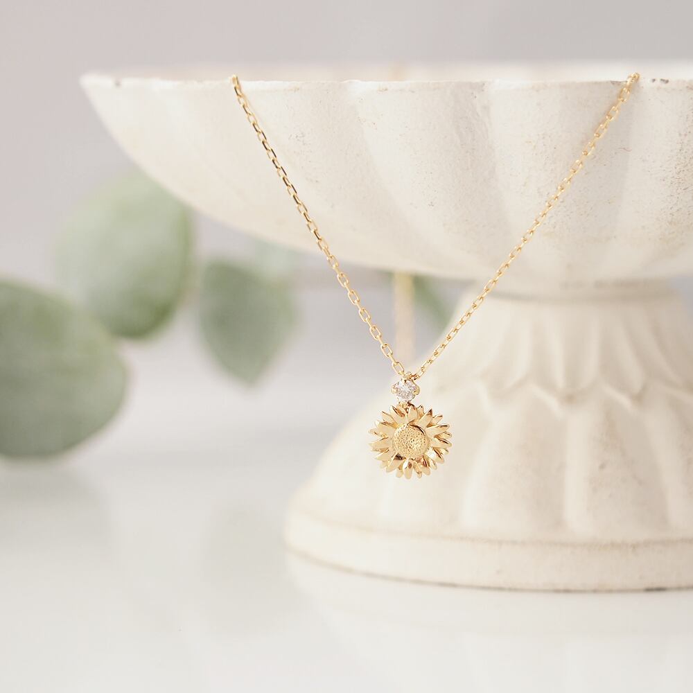 向日葵とダイヤモンドのK18ネックレス 0.03ct ひまわり|季節を感じるジュエリー|夏-Summer
