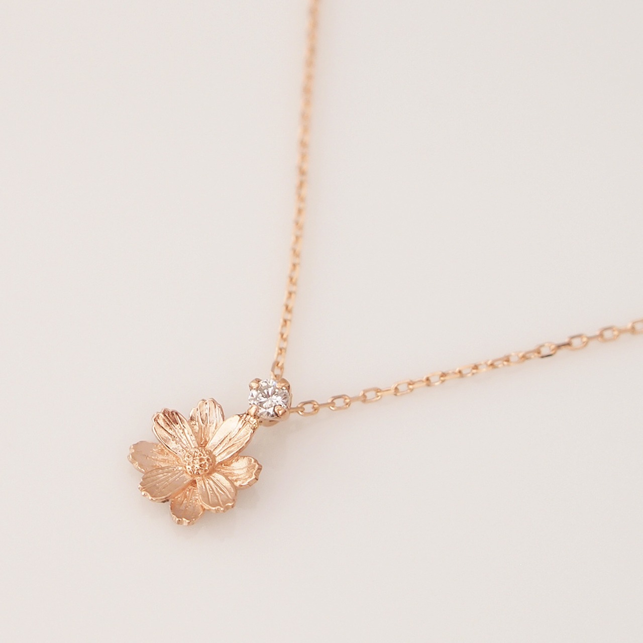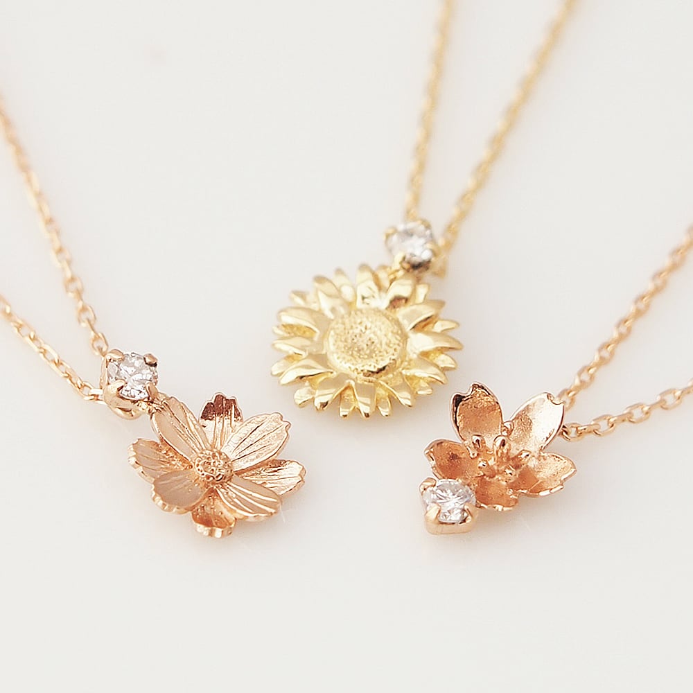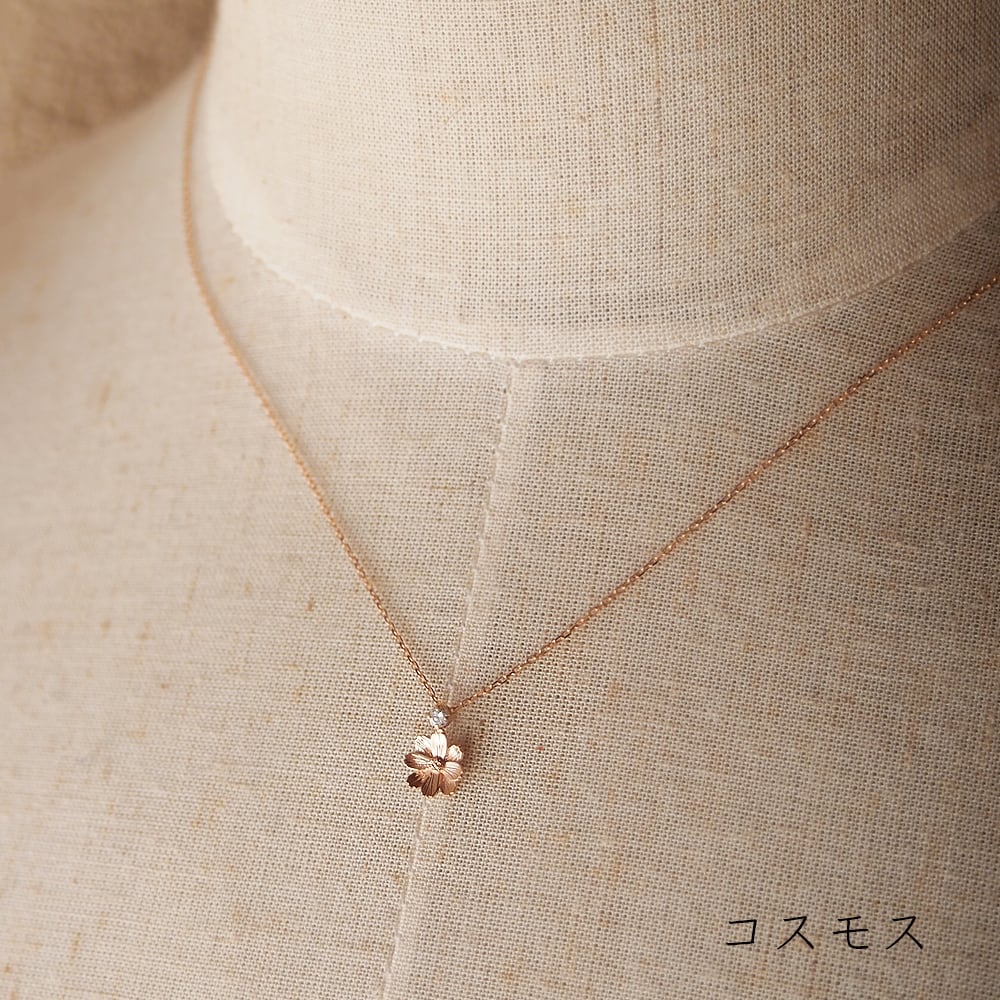 コスモスとダイヤモンドのK18ネックレス 0.03ct 秋桜|季節を感じるジュエリー|秋-Autumn